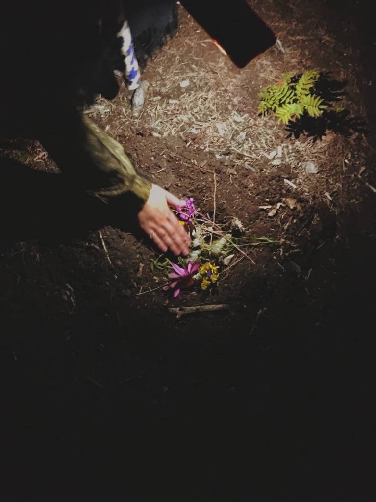 Exercises such as sonic meditations and generally spending time in nature can help declutter our minds and put us in direct contact with our more intuitive and sensing sides. Making use of this, I dedicated time at the end of the night to reflect on how we show up for ourselves, and to inspire care, compassion and courage when assessing this. I asked people to write down two things: something they wish to let go of and something they want more of. We then left the hill to the moon, and set off to bury our offerings in the small hole I had clumsily dug with a kitchen spatula earlier that day.